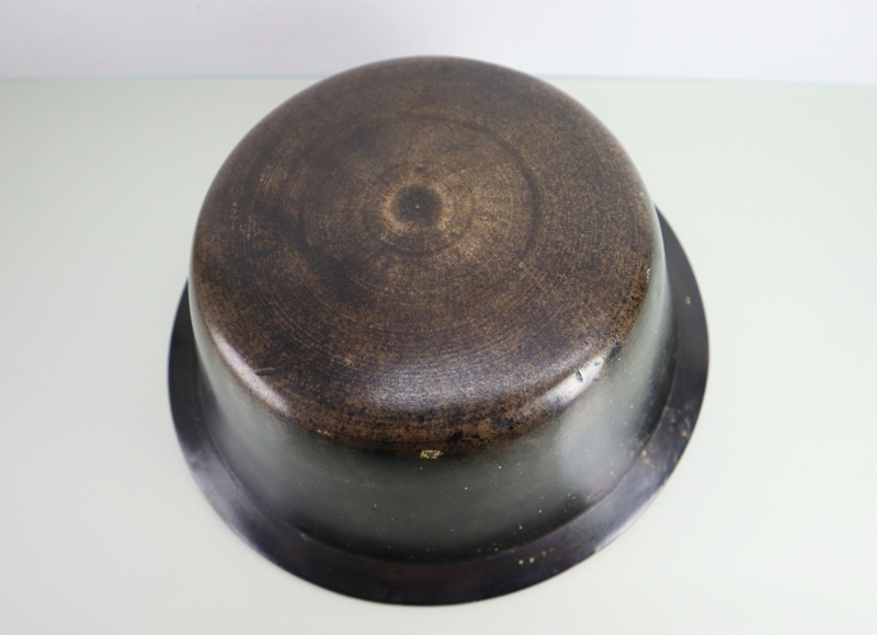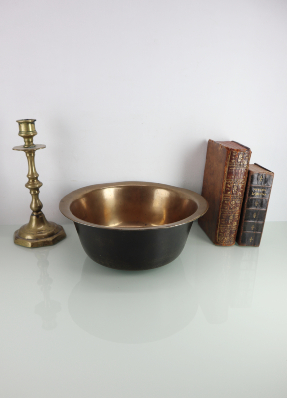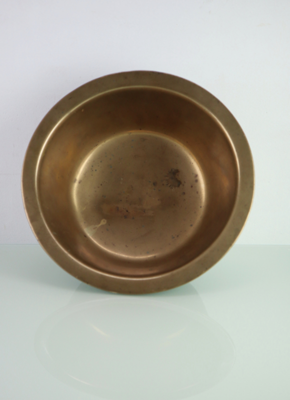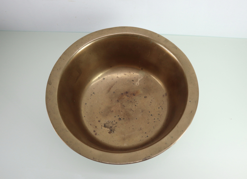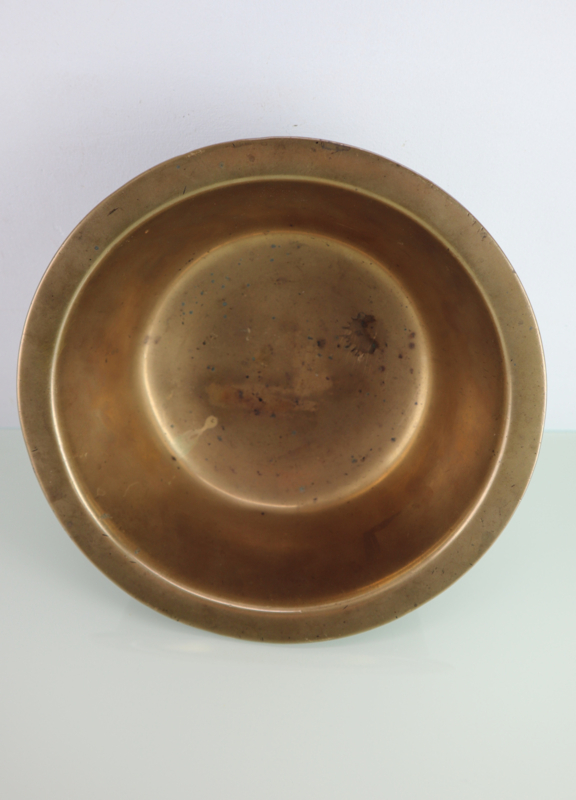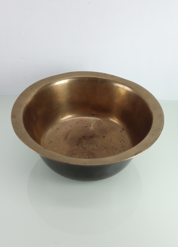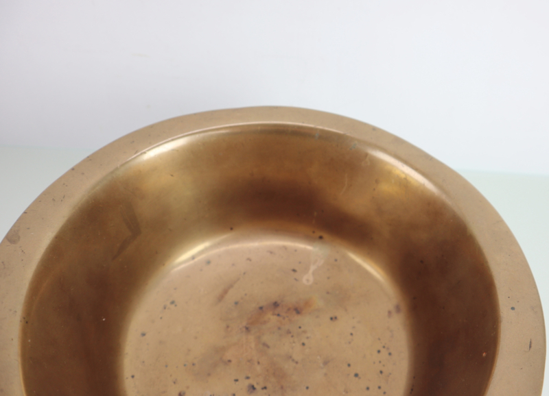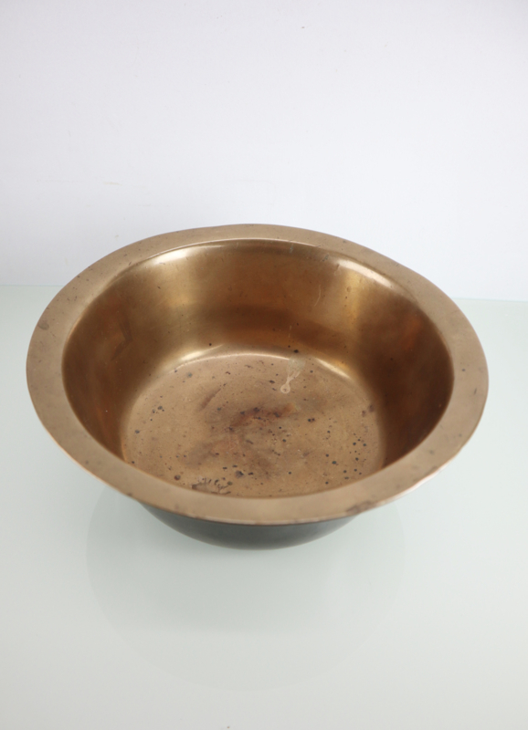 Mooie antieke bronzen schaal / kom met omgevouwen rand en een iets bolle bodem. Deze schaal heeft een aantrekkelijk patina gekregen door de jaren heen. Zeer decoratief.