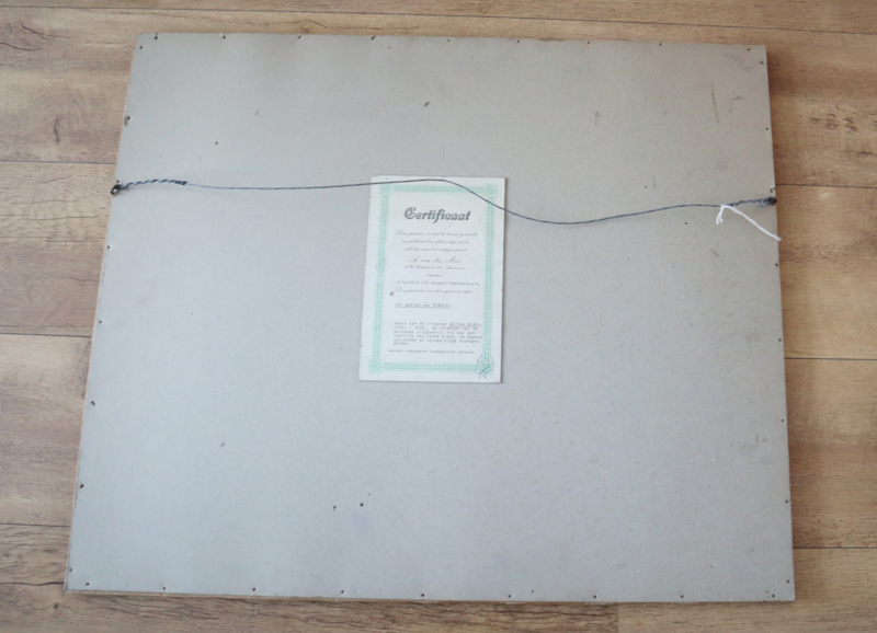 Conditie: Voor de leeftijd goed, verticale verkleuring in het midden op de vouw. Passepartout heeft kleine slijtagesporen.