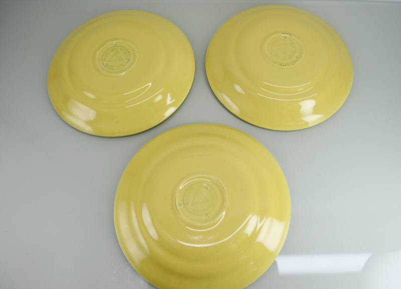 Conditie: Zeer goed, 1 schotel heeft een paar schilfertjes van het glazuur aan de rand.