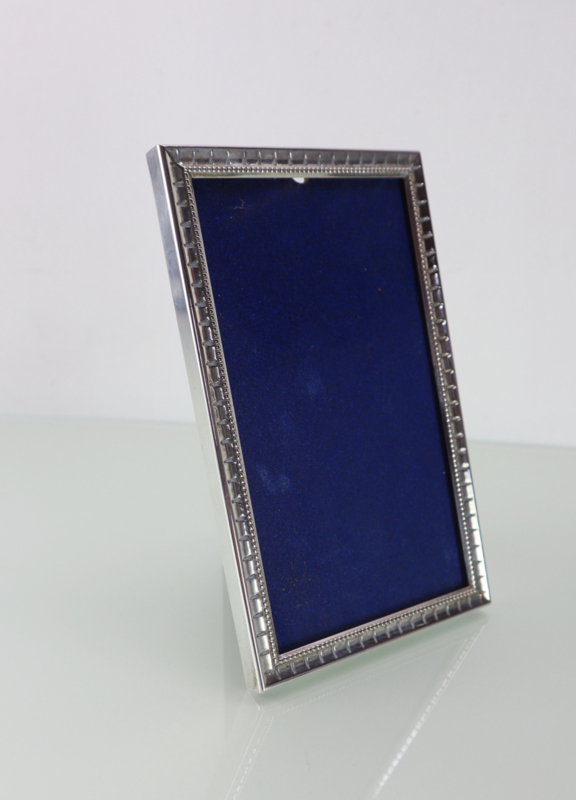Stijlvol rechthoekig (Nederlands) zilveren fotolijstje met fraai geribbelde rand. Dit lijstje verkeert nog in een heel mooie staat en is gemerkt met vier zilverkeuren. Eénvoudig aan de achterzijde te openen, compleet met glaasje. Zeer stijlvol.