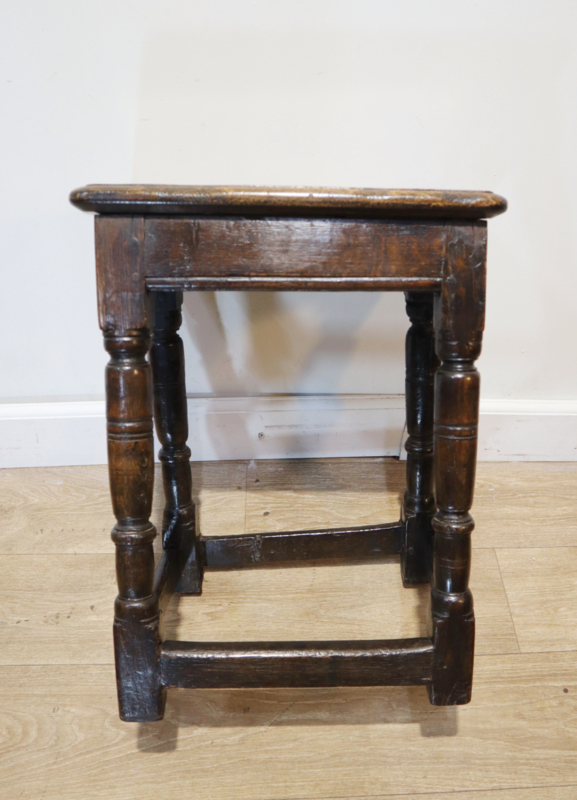 Fraai origineel antiek Engels krukje, ook wel Joint Stool genoemd, met gedraaide poten die onderling verbonden zijn met regels. Dit krukje kan gebruikt worden om op te zitten maar kan ook heel goed als klein bijzettafeltje gebruikt worden. Een zeer decoratief en praktisch meubel uit de 17e eeuw!