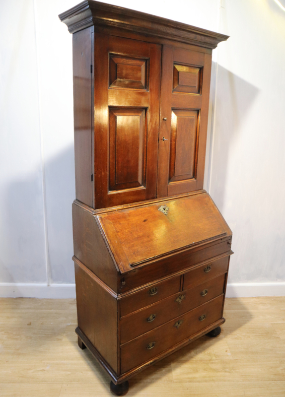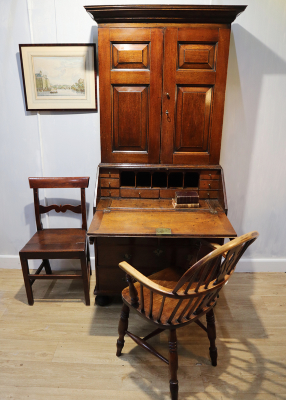 Antieke Engelse secretaire met boekenopstand, 18e eeuw.