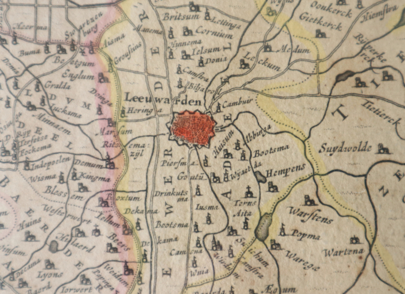 Antieke kaart Friesland Hondius, 17e eeuw